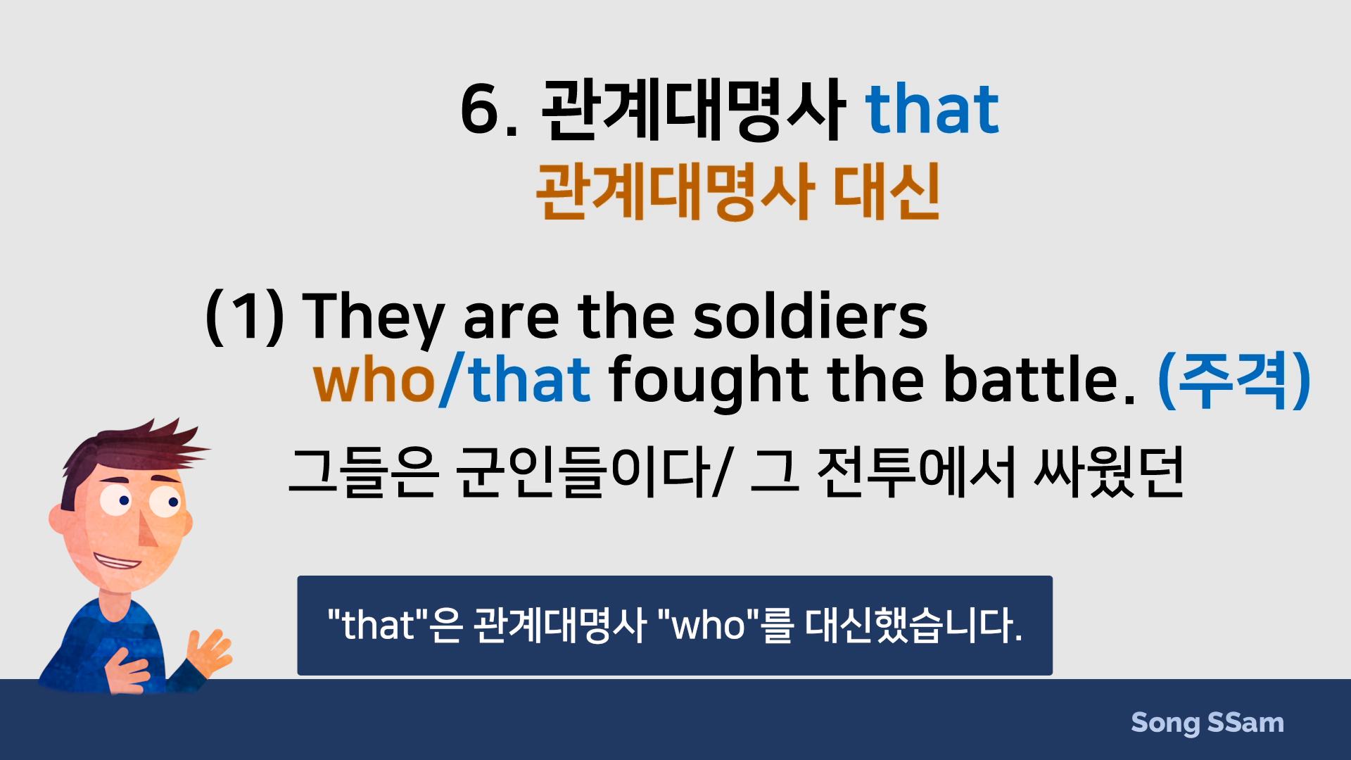 이상으로 관계대명사 that에 대한 설명을 마치겠습니다.