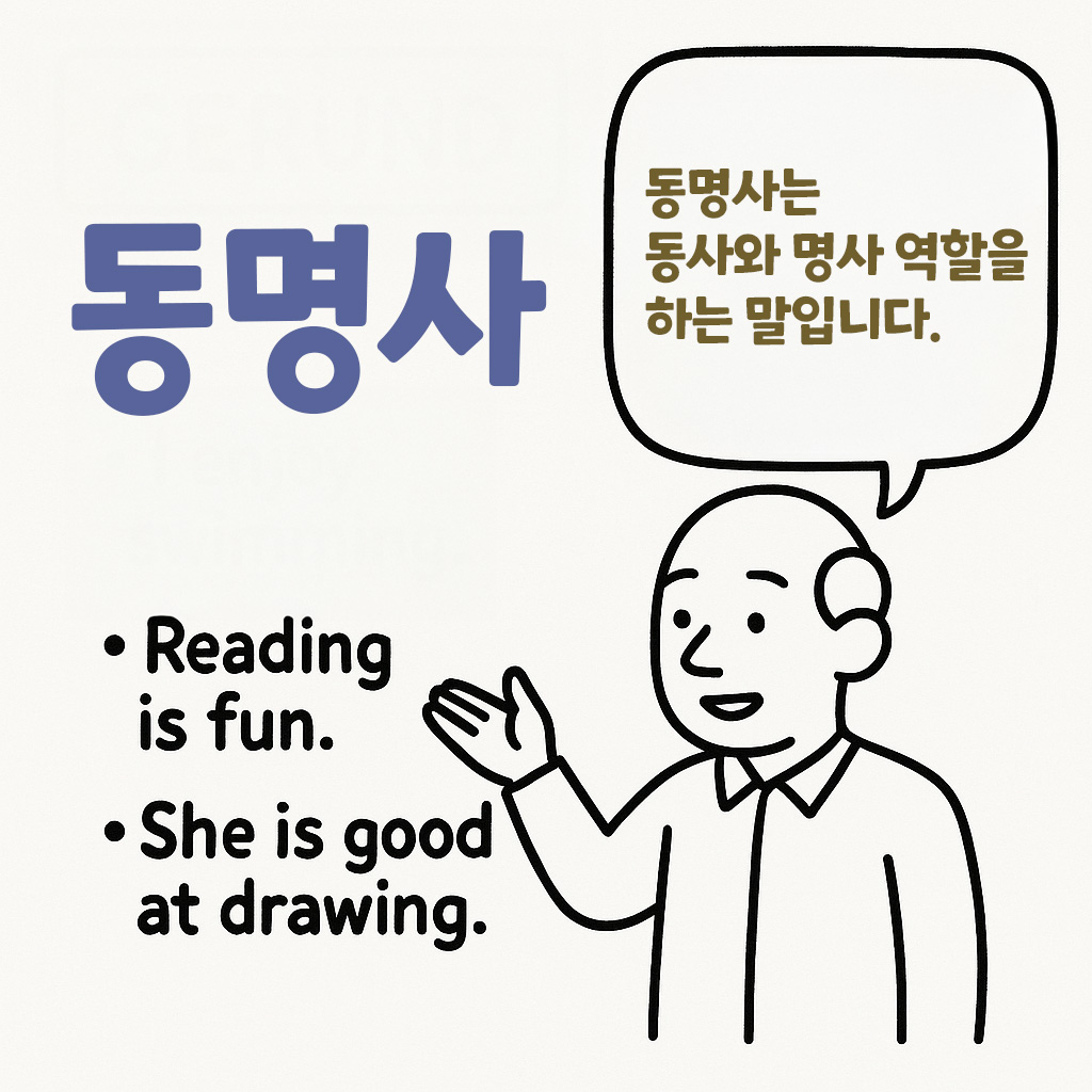 이번 시간에는 동명사의 형태와 역할을 공부하겠습니다.