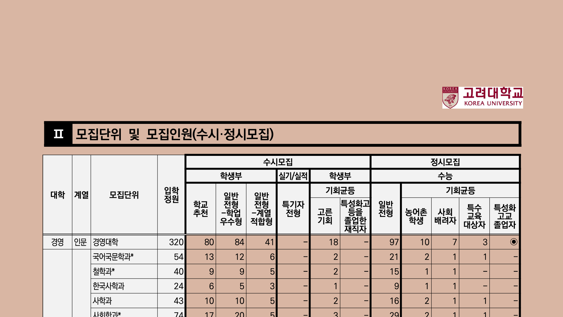 전공과 같은 뜻으로 쓰입니다. 모집 단위가 학과일 때는 4년 동안 동일한 학과에서 공부합니다. 고려대학과입니다. 국문학과사학과 수학과등이 있습니다. 학과별 모집은 이름과 이론이 분명해서 이해하기 쉽습니다.