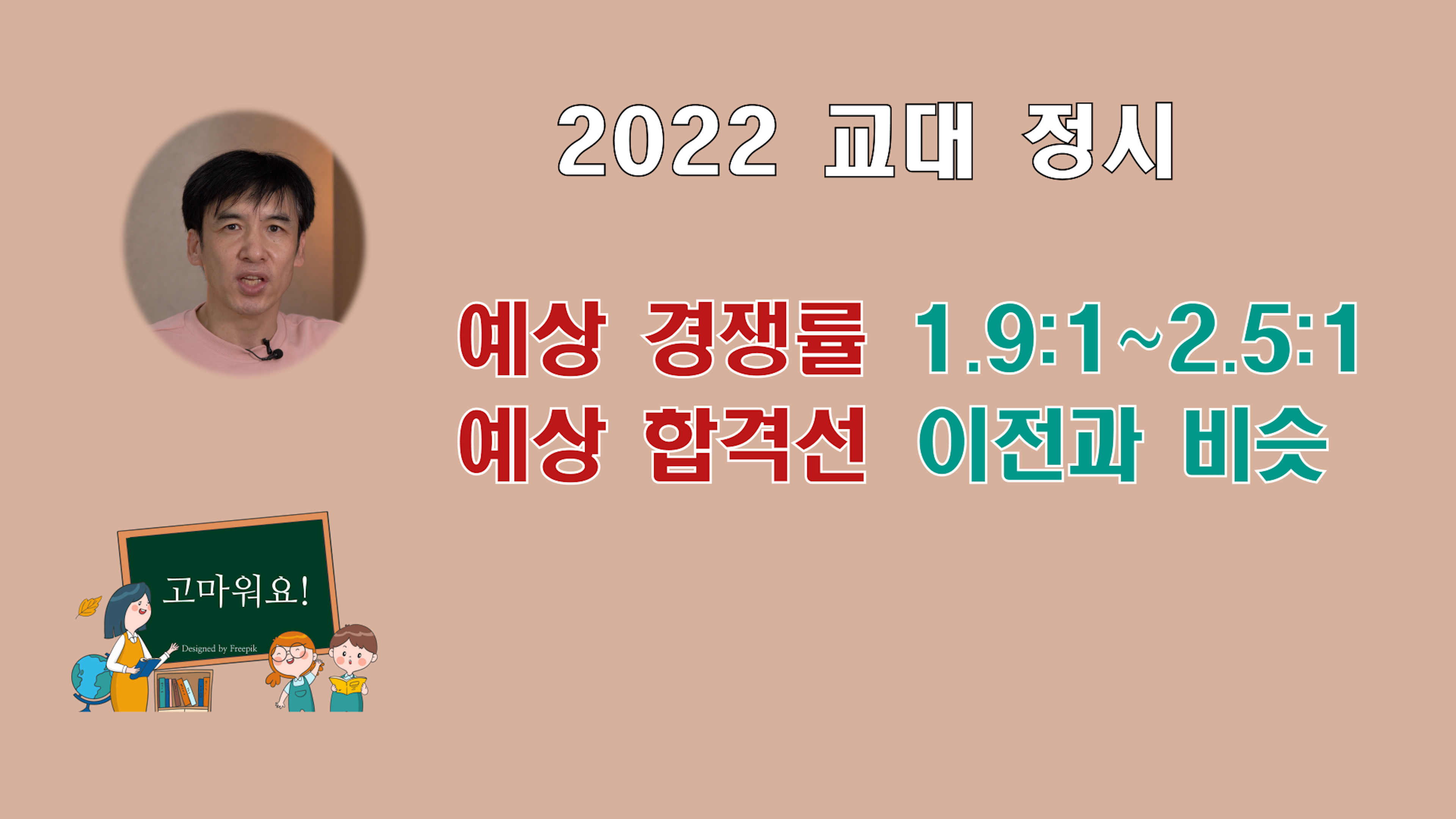 정시 전형에서도 교대경쟁률은 소폭 상승할 것으로 예상됩니다. 예상 경쟁률은 1.9:1 ~ 2.5:1 정도입니다.