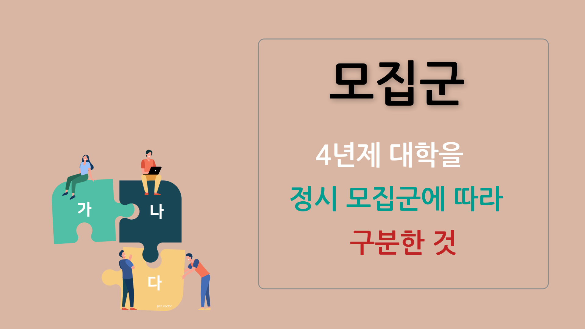 4년제 대학을 정시 모집 기간에 따라 구분한 것입니다. 정시에서는 각 대학 전형일에 따라 가/나/다 3개 군으로 나눕니다.