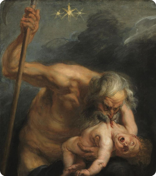 크로노스는 그리스 말로 ‘시간’을 의미합니다. 그는 신화에서 낫을 든 건장한 노인으로 묘사됩니다. 아버지 우라노스를 쫓아낼 때 사용했던 낫은 단순한 무기가 아니었습니다. 그것은 농사를 상징하는 중요한 물건이기도 했습니다. 농사는 봄에 씨를 뿌리고 여름에 햇볕을 받고 가을에 수확하는 일, 즉 자연의 리듬과 시간을 따르는 일입니다. 크로노스는 이러한 시간을 다스리는 신으로, 자연의 질서와 순환을 상징합니다.